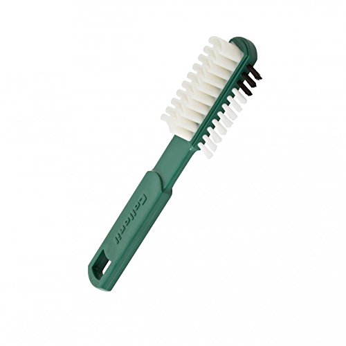 The crepe surfaces rubbed against the leather effectively removes spots and stains and revives the nap in the nubuck or suede. A slim row of bristles included on the green handle reaches narrow curves and seams, allowing all areas of the shoe or other fine leather product to be cleaned and maintained.
