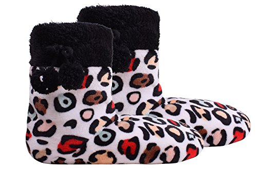 -. Feature : SIZE:Slipper socks for women have two size :7-9 ; 9-11.You can choose the size of your slippers boot to purchase.Soft womens slippers fits really nice,not bulky, and very comfortable ready for indoor wear.A useful accessory that one can always use in the winter. / Material:Made with a soft fuzzy material.Comfort outdoor slipper shoes for women are cute & soft & very light weight!The little for grippers are nice on the bottom.Cut pompoms are a super soft, artificial fur decoration.Very beautiful look! / Leopard Design:Womens boot slippers have very fashionable leopard design.That means you can stay in fashion, even at home.House wear warm shoes are adorable and the inside is very soft to keep your feet nice and warm. Great non-slip function keep your safe. / If you tired of walking around wearing just socks inside the house.I think you need this womens slipper socks.You can also try them wearing socks and they were still perfect, not tight at all!Colors are bright! / 30 Days Free Exchange and Returns Policy - If for any reason you are unhappy with any product by us,please do not hesitate to contact us. We will take full ownership and responsibility for the quality of our products and will do our very best to solve your problem swiftly and efficiently!