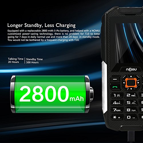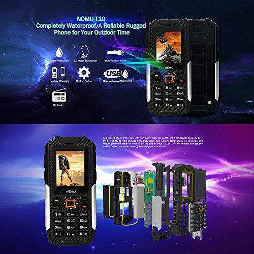 NOMU T10 Dual SIM Outdoor Handy, IP68 Wasserdicht,Stossfest Rugged Staubdicht, Ohne Vertrag mit Kamera Taschenlampe FM Radio 2800mAh Akku
