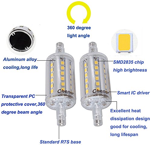 R7S Base LED Light Bulb 5W 78mm(3.07''),120V Warm White 2700K,Double Ended J Type Halogen Bulb Replacement (Non-dimmable) ,Pack of 2,Chener
