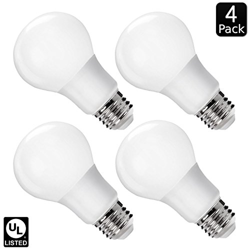 Luxrite LR21394 (4-Pack) 9W LED A19 Light Bulb, 60W Equivalent, Non-Dimmable, Bright White 5000K, E26 Base, UL-Listed