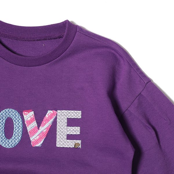 소재-겉감 : 면 100 배색 : 면 95 폴리우레탄 5 색상-보라색 사이즈-110,120,130,145,155,165상세설명-여아 LOVE 보라티셔츠, 간절기에 입기 좋은 티셔츠입니다. 예쁜 보라색 티셔츠. 여러 옷과 매칭할 수 있는 좋은 아이템.