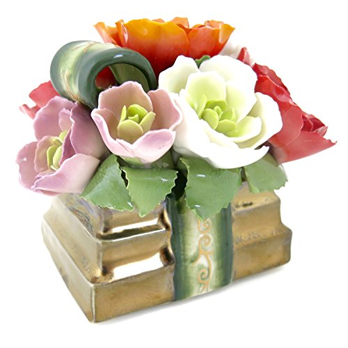 Christmas day ceramic Rose bouquet porcelain music box.. This highly detailed and crafted Bouquet of roses is an outstanding centerpiece. Mother will treasure this for years