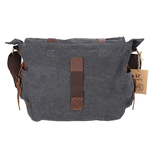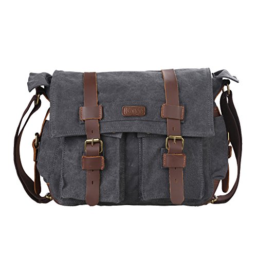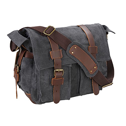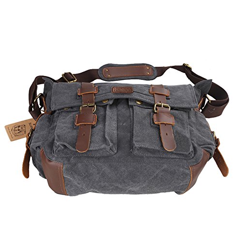 - Title : Kattee Military Canvas Shoulder Messenger Bag Leather Straps Fit 17" Laptop (Dark Gray)