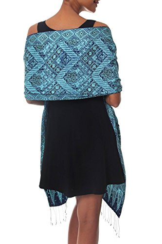 About this item: Classic Javanese batik patterns inspire this elegant silk shawl. Yuni Kristina selects the kawung, an eight-pointed rosette once reserved for the sultan, and the triangular tumpal pattern for this design. These motifs once adorned men's formal clothing during the ancient Javanese Kingdom and symbolize dignity, self-respect and self-esteem. Each motif is created by hand, as evidenced by the occasional pencil mark or slight color variations. 75.0" L x 21.25" W - Dry in the shade
