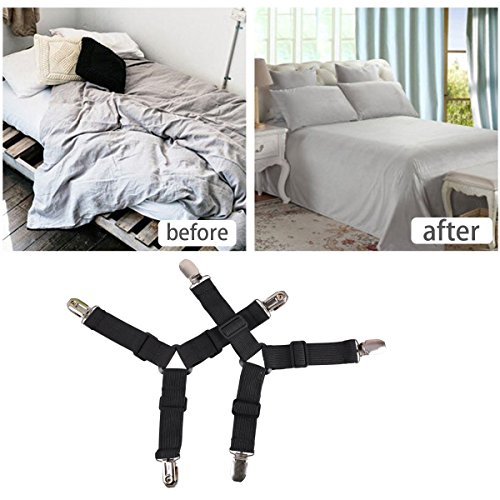 Flee 4 Packs Adjustable Bed Sheep Fasteners Suspenders Have Duty Bed Sheet Grippers Suspenders Holder Band Straps Clips Fasteners
