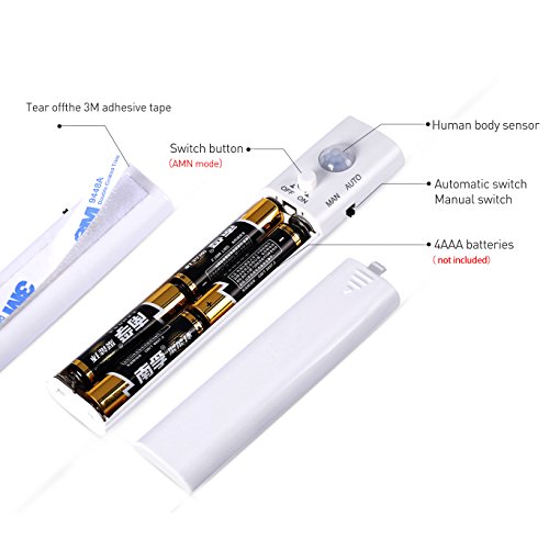 - 3. Motion Sensing: Lights up when people get closed within 1 meter, turn off in 30s when people left. Ordinary 4 AAA batteries can last MORE THAN 160 minutes continuous
