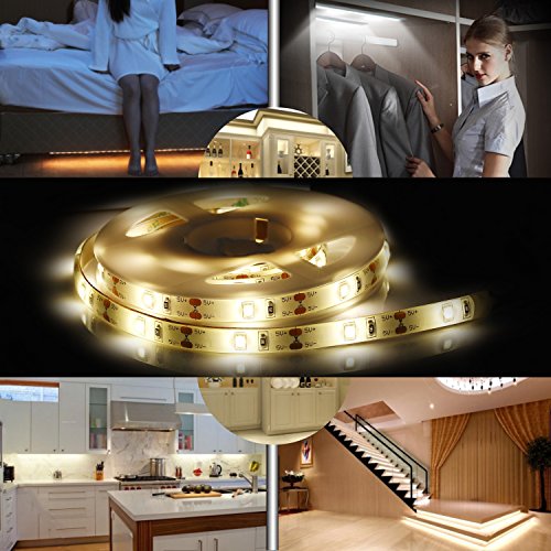 - 1. Bring Light to Your Home: Operated by 4 AAA batteries (no battery included), powered by 30 LEDs in the 3.28ft strip, the light strip Stick it anywhere even curved surface, Kids Rooms, Closet, Pantries, Attic, Drawer, Trunk, Hallways, Stairs.