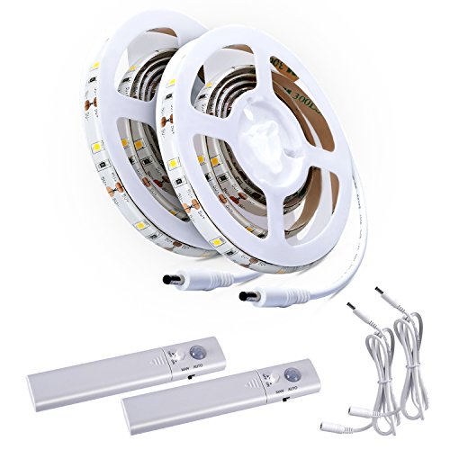 ALED LIGHT Motion Activated Bed Light IP65 Waterproof Flexible Battery powered LED Strip Sensor Night Light Illumination with Automatic Shut Off Sensor for Bed, Hallways, Stairs (2PACK)