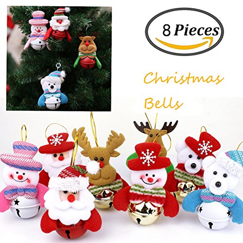 Plush Hanging Christmas Decorations Sets,Christmas Ornaments for Home Decor Tree Pendant Decorative, santa/snowman/reindeer/bear (8PCS Bells Ornaments)
