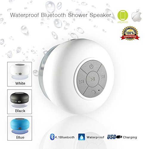 Wireless Bluetooth 4.0 Shower Speaker - Waterproof Portable Wireless Premium Quality with Hands-Free Built-in Mic Rechargeable Battery Supports all Bluetooth Enabled Devices and Gadgets - Black