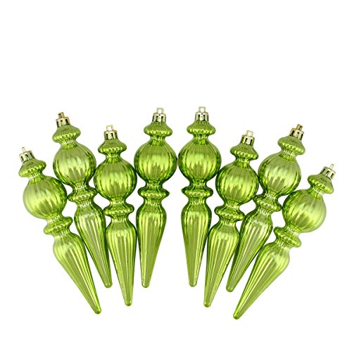 Northlight 8 Count Shiny Kiwi Green Ribbed Shatterproof Christmas Finial Ornaments, 6.5"