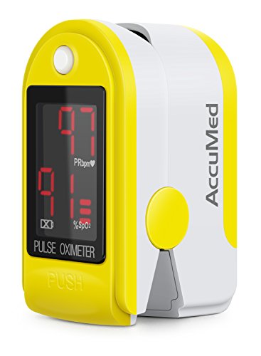-. Binding : Misc. -. Brand : AccuMed -. Color : Yellow -. EAN : 0635983099521 -. Feature : AccuMed's digital LED display with low power consumption plus auto-power off feature allows for 40 continuous hours of battery life. / Cover against ambient light offers superior ease of reading. Fast and accurate SpO2 and pulse measurements. / Accommodates pediatric to adult finger sizes and can be used by sports and exercise enthusiasts as well as anyone interested in measuring pulse rate and oxygen saturation. / Includes 2 AAA batteries, lanyard, and convenient carrying case. / Intended for sports and aviation users only. Guaranteed by 1 US year warranty offered exclusively by AccuMed. -. IsAdultProduct : 0 -. IsAutographed : 0 -. IsMemorabilia : 0 -. Label : AccuMed -. Manufacturer : AccuMed -. MPN : AC-CMS50DL-YELLOW -. PackageQuantity : 1 -. PartNumber : AC-CMS50DL-YELLOW -. ProductGroup : Sports -. ProductTypeName : SPORTING_GOODS -. Publisher : AccuMed -. Size : CMS-50DL -. Studio : AccuMed -. Title : AccuMed® CMS-50DL Pulse Oximeter Finger Pulse Blood Oxygen SpO2 Monitor w/ Carrying case, Landyard Silicon Case & Battery (Yellow) -. UPC : 635983099521