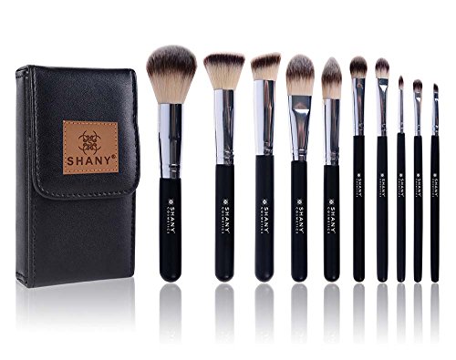 -. Feature : This set includes 10 synthetic cosmetics brushes with an elegant travel makeup pouch / Includes powder, blush, foundation, bronzer, Eye shadow, concealer, and contour brushes. / These makeup brushes are medium sized cosmetics brushes and great for everyday use / Rinse with SHANY natural makeup brush cleanser before the first use, Brush instruction included. / Designed in USA with team of artists, Proud member of PETA and against animal cruelty.