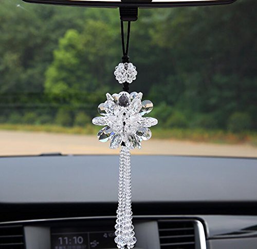-. Title : Crystal Flower Car Hanging Ornament Car Rear View Mirror Pendant Car Accessories