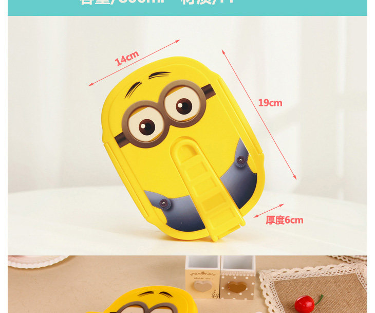 Product DescriptionCartoon small yellow man student lunch box sealed boxes can be placed in the microwave the whole, super easy, office workers or students apply lunchbox. Using food PP material,, feel heavy use of high quality resin material, you can microwave and freezer -20 to 140 degrees! Double buckle design, compact and seal the gap, the smell does not leak, 800ml large capacity, it is value for money, the most classic, Do not miss the most classic left - appreciate you, rest assured to accept, you will get more reward. In addition to being a small lunch box can be stored outside the food! With handle, Dafan easier to take. Comprehensive care of your needs, 100 percent good intentions boxes.