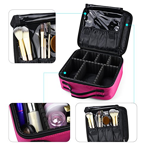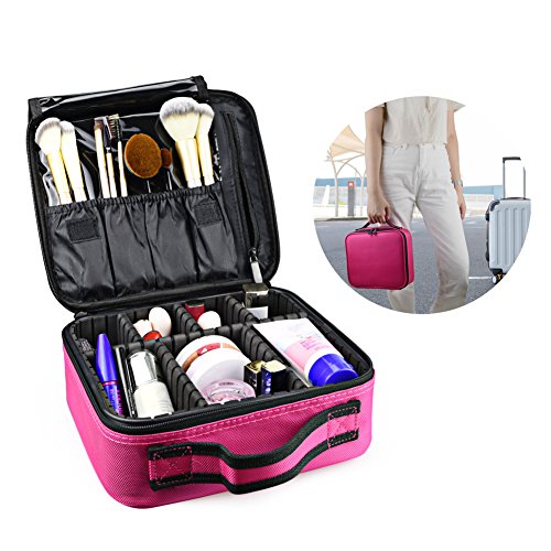 Goldwheat Portable Cosmetic Case Bag Makeup Train Case Makeup Bag Travel Kit Organizer for Women Girls with Removable Dividers,Pink