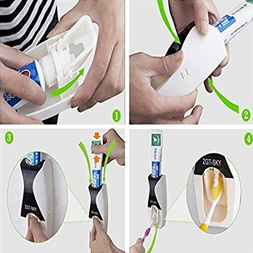 SAVING-Toothpaste squeezer pump based on vacuum technology deliver a nice amount of toothpaste withount waste and mess[Tips: Wipe down the surface of the wall or mirror, Place the double sided tape or screw the dispenser to the wall, Remove protective backing from tape strips,press it firmly against surface.do not use it for 24 hours after installation]