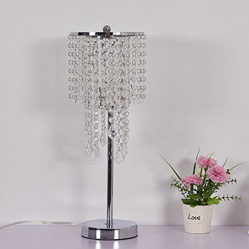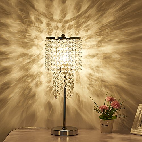 Surpars House Raindrop Silver Crystal Table Lamp for Bedroom,Living Room,Girls Room or as Wedding Gift