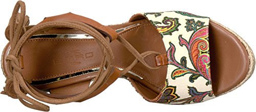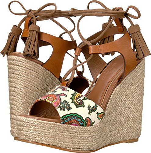 Binding : Apparel Product Description Freshen up your wardrobe with the Etro™Paisley Wedge Sandal. Leather and textile upper. Slip-on construction with wrap around ankle tie closure and decorative tassels for added flair. Open toe silhouette decorated with colorful designs on strap across the toes. Leather lining. Lightly padded leather insole with embossed logo. Jute wrapped platform and wedge heel. Durable leather outsole. Imported. This item may ship with an attached security tag. Merchandise returned without the original security tag attached or a damaged tag may not qualify for a refund. Measurements: Heel Height: 5 in Weight: 13 oz Platform Height: 1 1?2 in Product measurements were taken using size 38 (US Women's 8), width M. Please note that measurements may vary by size. 0