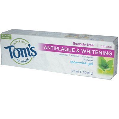 -. Feature : 6 Pack of 4.7 oz Tom'S Of Maine Antiplaque And Whitening Spearmint Gel Toothpaste / Fluoride-free formula / Clean your teeth and help maintain their natural color / No artificial colors, flavor or preservatives / Made in USA