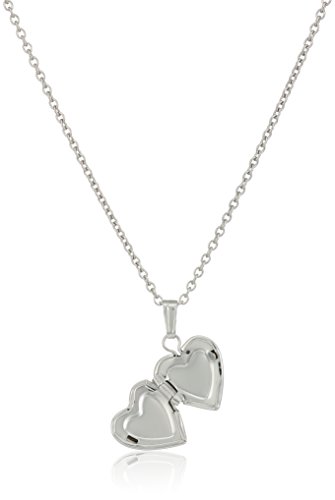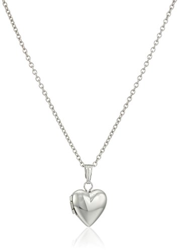 Polished necklace in sterling silver featuring heart locket that opens to store a treasured photograph