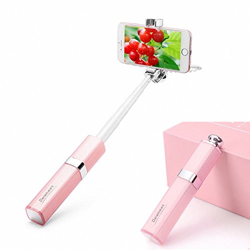 Delabest Wired Extendable Selfie Stick with Girly Lipstick Design for iPhones, Android and Windows Phones (Pink)