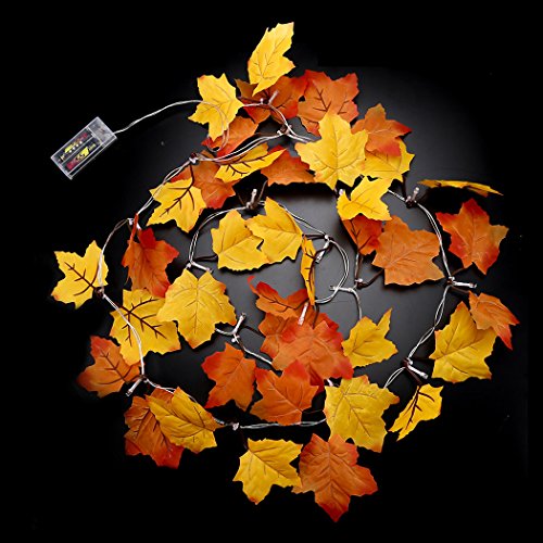 -. Feature : Set of 20 LED lights and 8.2 feet. Requires 2 AA batteries, not included / LOOKS LIKE THE REAL FALLEN LEAVES- The orange and yellow leaves lit by the vibrant orange lights make for a great blend of colors to warm up any room. Perfect festival decorations with no outlet needed. / FOR BOTH DAYS AND NIGHTS DECORATIONS - In the day time, it will do its job being a string of maples. At night, the lighted LED on its string will accent any room and generate a warm atmosphere for any occasion. / DECORATES ANY CONNER OF YOUR HOUSE - This lighted Fall Garland Operated by 2 AA batteries(not included)is the. They will not limited by the power cords. Decorates table top, mantel, fireplace, doorframe, doorway, stair banisters, etc. / DURABLE - This garland features a suitable length(8.2 feet/2.5m) for decorations. Bend and adjust to any shape that you like for your decorating needs.