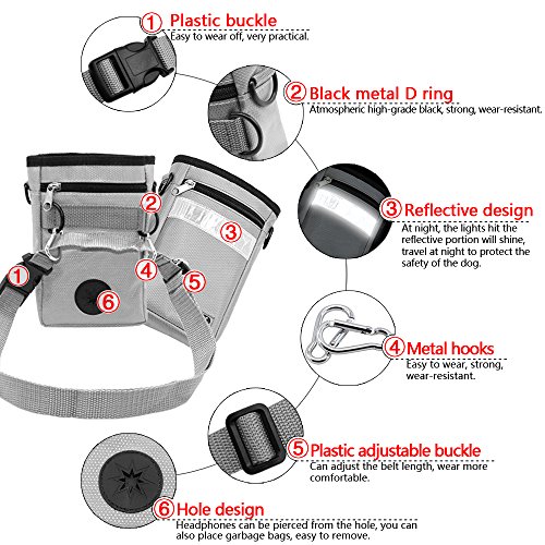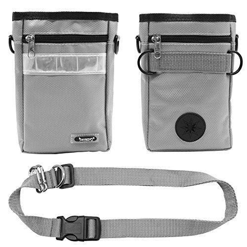Studio : Pets Corner Market Publisher : Pets Corner Market Binding : Misc. Product Description BRAND NAME:Pets Corner Market TYPE: Dog Treat Training Pouch STORES KIBBLE, TOYS TREATS: Convenient drawstring securely holds in generous amounts of dog kibble, and toys. KEEPS YOU PREPARED: Has a convenient built in dog poop bag dispenser so bags are ready when you need them. Tie off the used waste bags on one of the two handy D-rings. WAYS TO WEAR: Use the removable 42"" adjustable waistband, removable shoulder strap, or strong metal belt clip for your desired comfort level. STORE YOUR STUFF: The 2 zippered pouches and mesh netting are perfect for storing your phone, money, or keys. Attach your clicker to a D-ring to free up your hands. 0