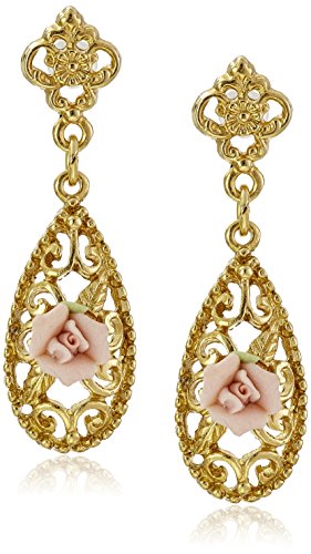 Downton Abbey Carded Gold-Tone Pink Porcelain Rose Drop Earrings