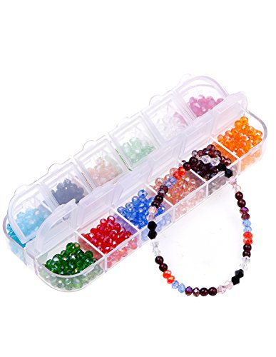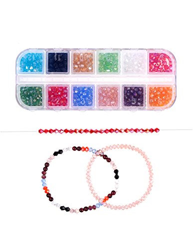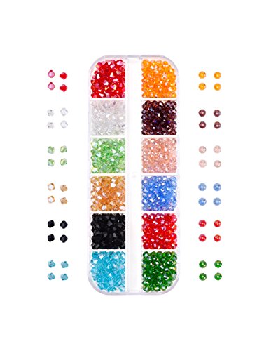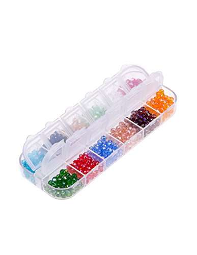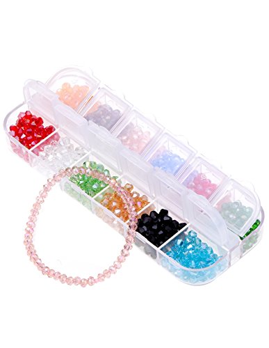 Outus 768 Pieces 4mm Crystal Glass Beads for Jewelry Making with Bead Container (2 Styles, 12 colors)