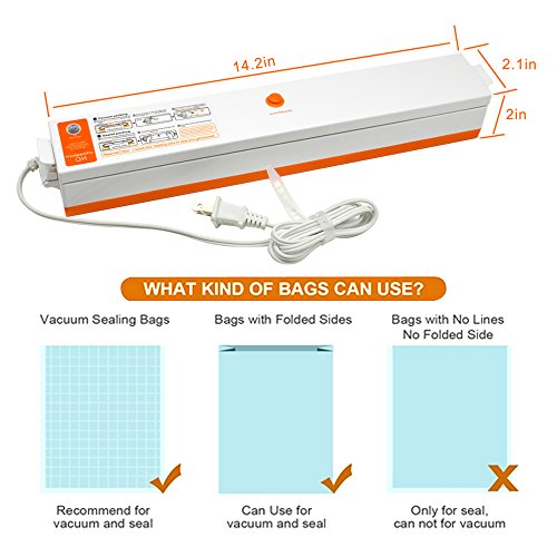- ♥EASY TO USE&CLEAN- Simple manual operation just need to put the bag in the vacuum sealing area and press the button on top middle,wait for a few seconds and everything is done! Seal strips,easy to wash!