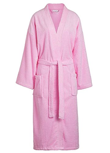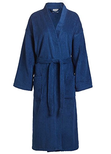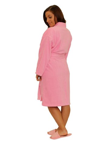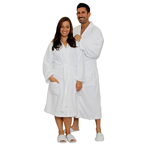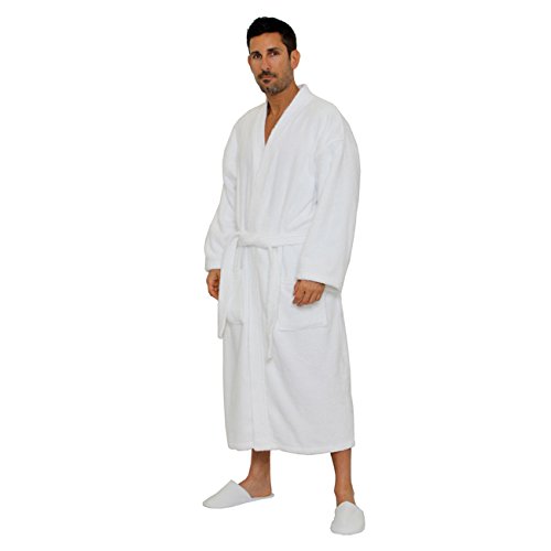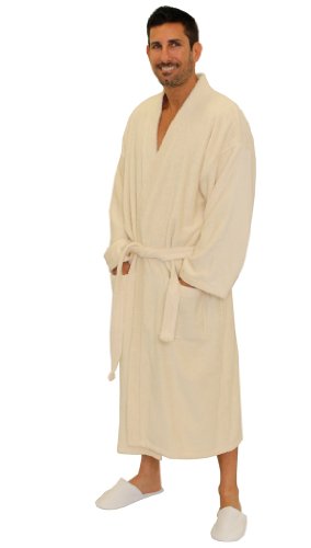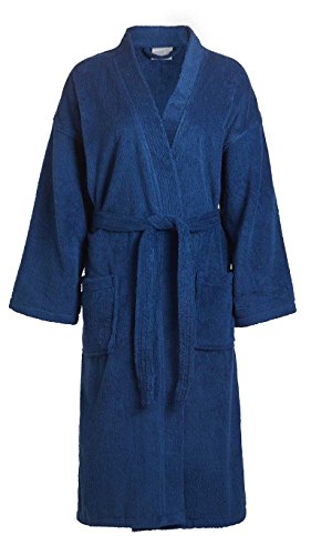 Product Description Our Adult Terry Kimono Bathrobes are woven from sustainable and environmentally friendly 100% Natural Cotton. These robes are made of terry cloth inside and out, and are designed for maximum comfort and durability. This robe is a unisex bathrobe, which makes it the perfect choice for your business, or as a special gift for a loved one. This robe has two patch pockets and tie belt. Machine wash cold, do not bleach, tumble dry low. Weight is about 3.50 lbs. 0
