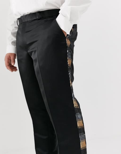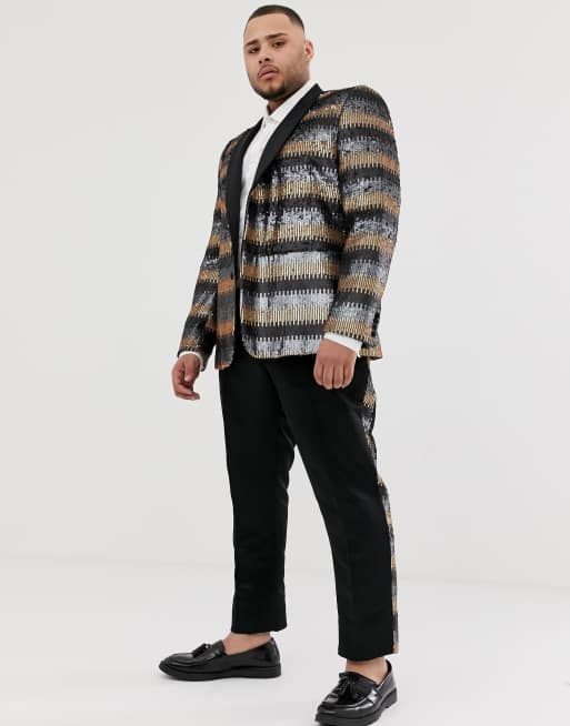 ASOS EDITION Plus skinny suit pants in gray and gold sequins