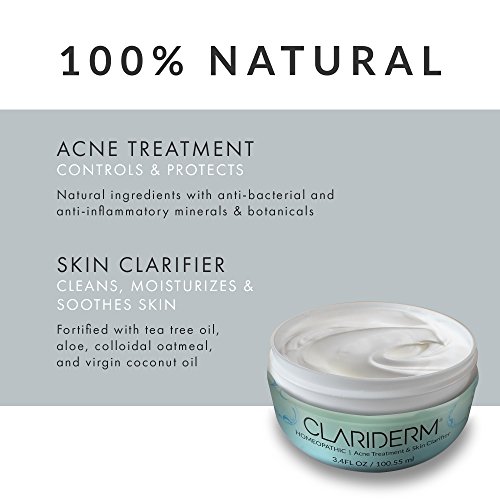 Clariderm All-in-One Natural Acne Treatment Cream & Skin Clarifier (90 day supply) - Natural and Patented Exclusive Anti-Bacterial and Anti-Inflammatory...