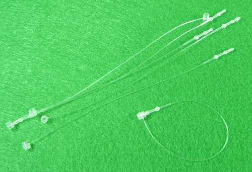 These are security loop pins fasteners. The convenient design threads through easily and snaps together at one end. The resulting loop won't pull apart and holds securely to the item. Fasteners are made of durable nylon construction. No tool required for fastening.