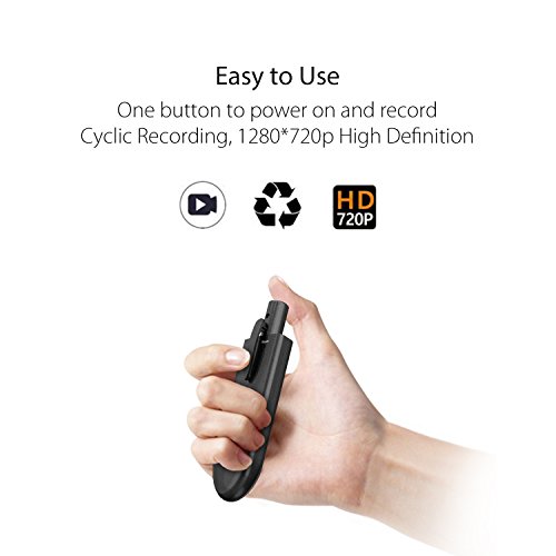 - Well Designed Spy Camera Pen: Looks like a pen when you put it into your pocket, but no one will know that it’s a camera. The mini portable body cam fits comfortably in your hand, pocket, or drawer, it is small enough to hide anywhere.