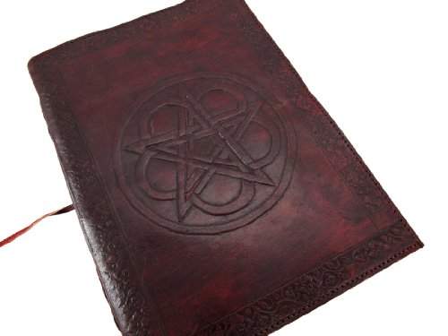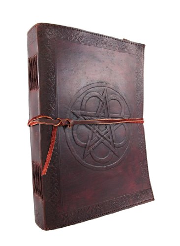 Large Embossed Leather Celtic Pentagram 184 Leaf Diary Journal
