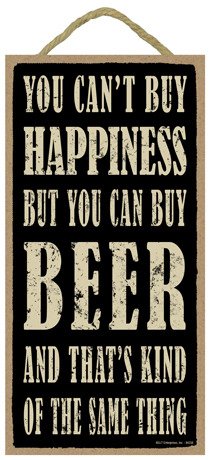 (SJT94238) You can't buy happiness but you can buy beer and that's kind of the same thing 5" x 10" wood sign plaque