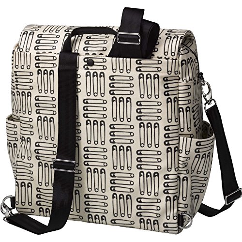-. Feature : Spacious interior with 5 pockets (2 to stow bottles), a key clip and 2 exterior bottle pockets / Wider zip-open top for quicker access to contents and a top grab-handle for easy toting / Zip-out diaper changing station for baby with removable changing pad and pockets for diapers and wipes. Upgraded hardware and vegan leather detailing / Magnetic front flap closure, plus snaps for added security. Exterior back pocket to store backpack straps when not in use / PPB-monogrammed plastic wipes case and now also includes stroller straps to easily attach bag to most strollers