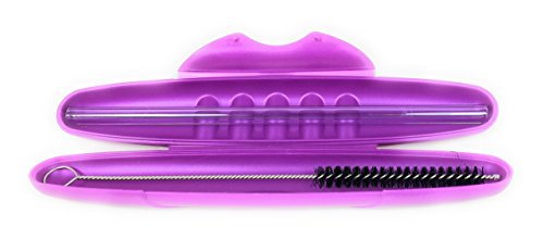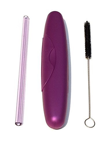 Reusable Glass Drinking Straw with Travel To Go Protective Carrying Case and Cleaning Brush (Amethyst)