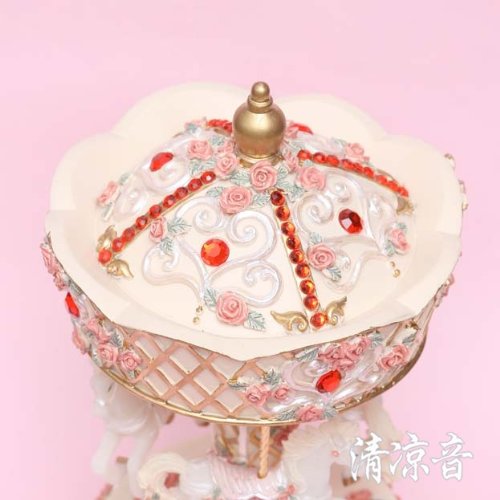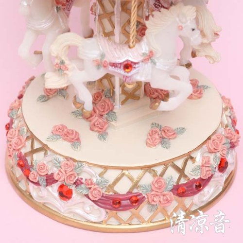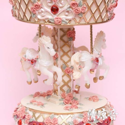 - Feature : High quality polyresin music box / Carousel music box for kids and girls / When wind-up ,Three horses will rotate with music / Tune is Canon or Castle in the sky, shipment is random