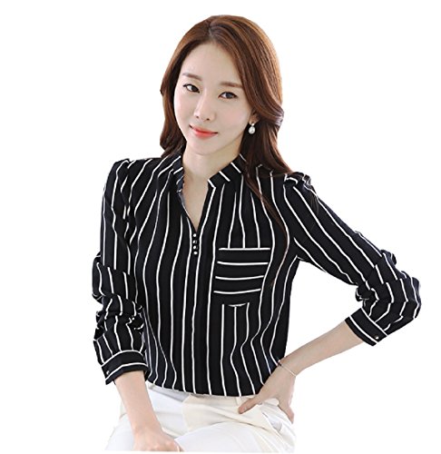 -. Feature : オシャレスタイルを演出してくれるストライプ柄ブラウスが新登場です。 襟部分のVネックデザインが女性らしく、胸元のボタンがPOINTになります / デザインが全体的に締まってスッキリとした印象を与えてくれる♪ ドレープ感の縦ラインですっきり感を強調してくれます。 / これから春に向けるスタイルにスマートな一枚です。 フォーマルでも、オフィスカジュアルとしてもデートでも使える一枚です。 / ワイドパンツやスラックスと合わせてカジュアルスタイルに、シャツをinしてスカートスタイルにも合わせられます。足元はパンプスやローファーはもちろんスニーカーやスリッポン、ショートブーツにも◎。1枚は持っておきたいアイテムです。 / S:着丈59cm バスト86cm 肩幅35cm 袖58cm M:着丈60cm バスト90cm 肩幅36cm 袖59cm L:着丈61cm バスト94cm 肩幅37cm 袖60cm XL:着丈62cm バスト98cm 肩幅38cm 袖61cm XXL:着丈63cm バスト102cm 肩幅39cm 袖62cm 少し小さめの作りになっています。購入される際は1つ大きいサイズでの購入をお勧めしております。