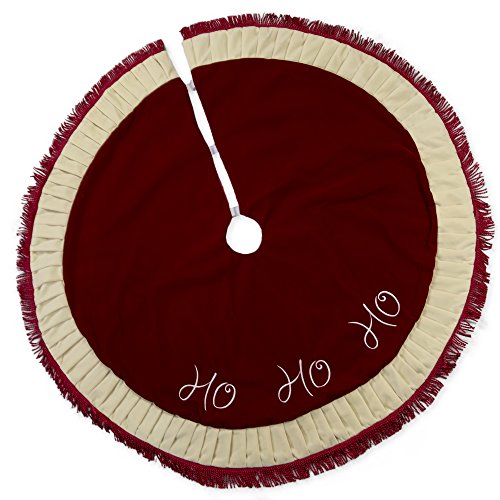 56 inch Red Ho Ho Ho Velvety Plush Fabric Christmas Tree Skirt with Tassel Trim