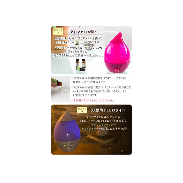 원본상품명: 超音波式 うるおいミスト 加器 (容量1.3L 群の加220ml/h) アロマ LEDライト レッド色