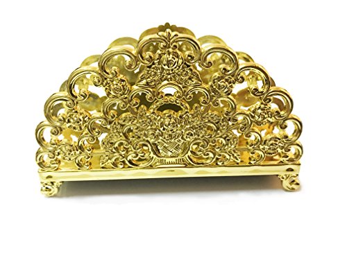 - Golden napkin holder lets you keep your napkins organized and close at hand. Designed to keep napkins organized on kitchen tables and countertops. It is attractive and effective. You will love it for its ability to hold the napkins in place and dispense. Keeps them clean, neat and readily available for when you need them.