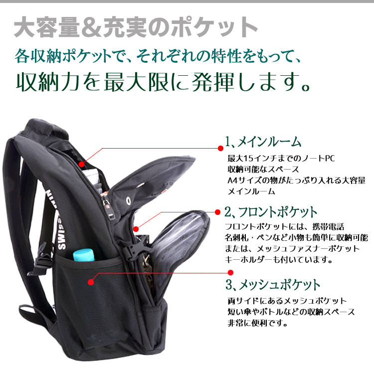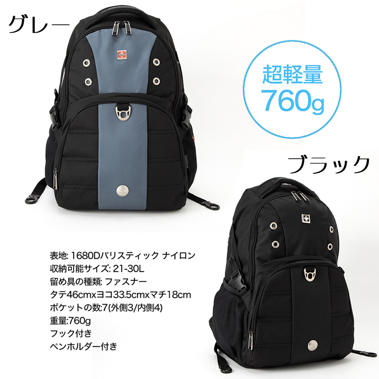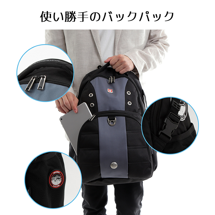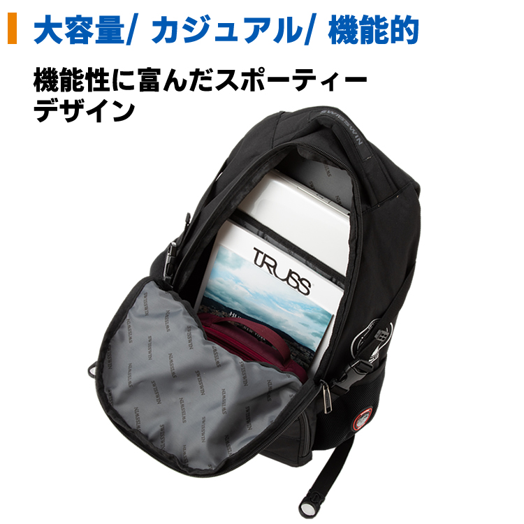 SWISSWINブランドのオンでもオフでも使える、おしゃれなパソコン対応バックパック。