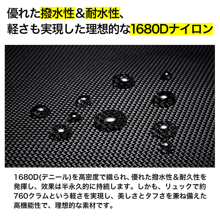 素材:1680D ballistic nylon(バリスティック ナイロン)+Polyester(ポリエステル)