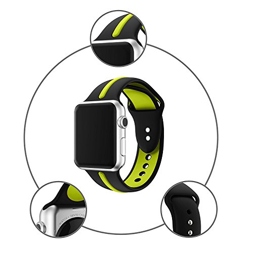 -. Feature : Silicone Apple watch band: For Apple Watch 38mm/42mm series 1 /series 2 /series 3 /Sport/ Edition all models, suitable for both men and women. / Sports fan bracelets: Sports style, fashionable and lightweight, waterproof swimproof sweatproof and breathness. / Dual secure wristband: Flexible fluoroelastomer metial with two pin-and-tuck closure, durable, secure and skin friendly. / Size adjustable: Watch band length is adjustable to fit well to your wrist, suitable for (5.0-7.5 inch) wrists. / Hassle-free service: One year warranty - Refund or resend if there is any quality problems, life-time friendly customer service.