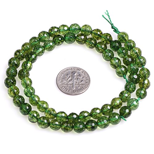 Round Faceted Green Peridot Gemstone Loose Beads for Jewelry Making Handmade DIY One Strand 15" Dyed Color (6mm/green)